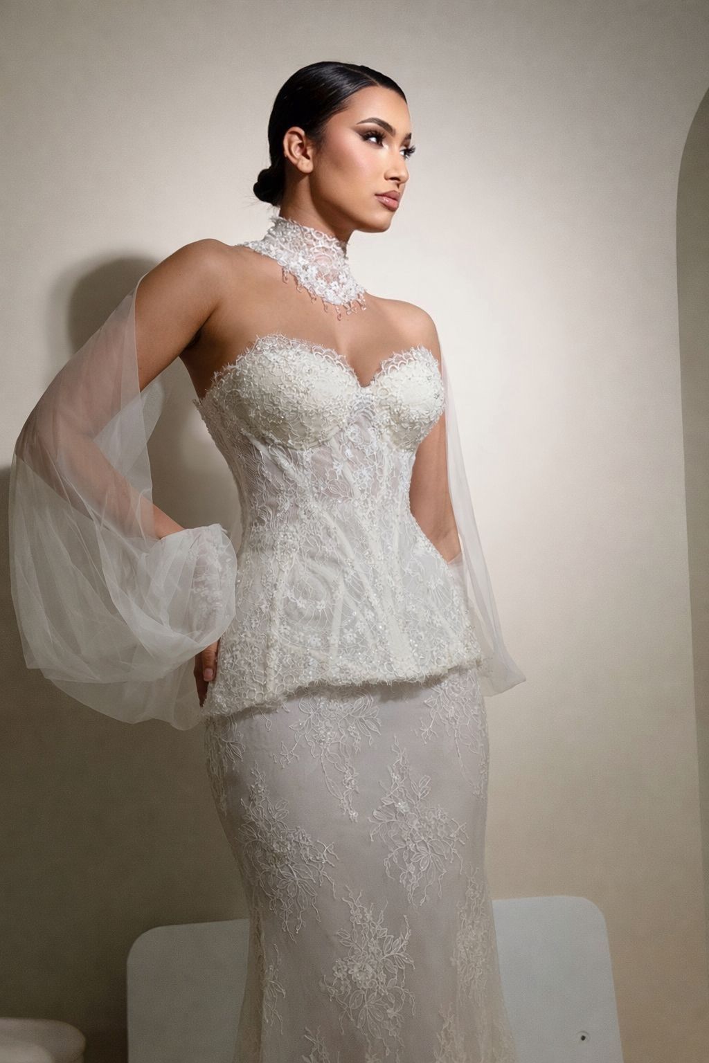 Le set de mariée Coralia réinvente la silhouette nuptiale avec une vision moderne et audacieuse...
