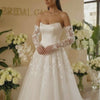 Une création d’exception qui célèbre la féminité avec raffinement.Cette robe de mariée coupe A-Line séduit...