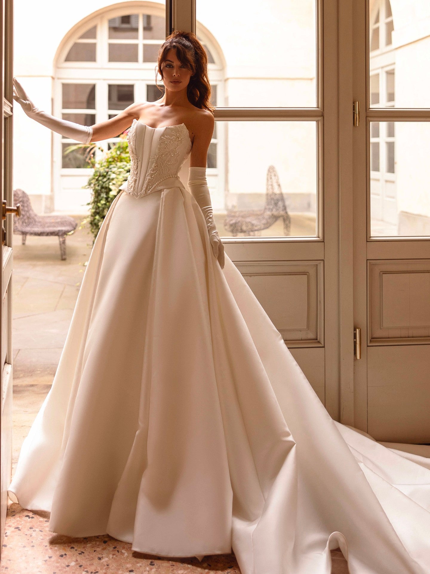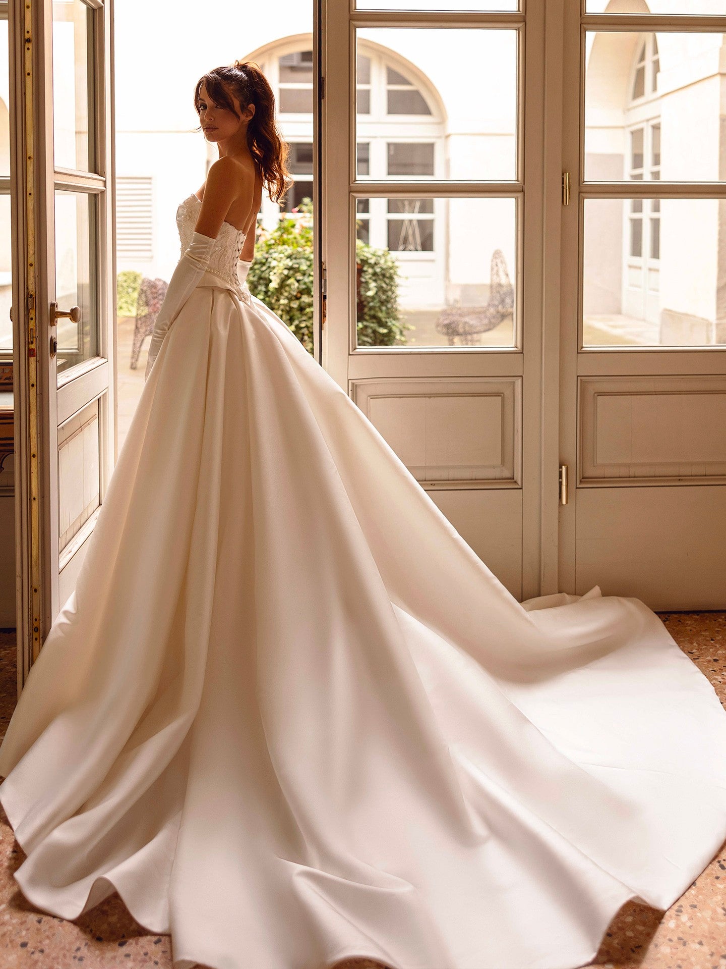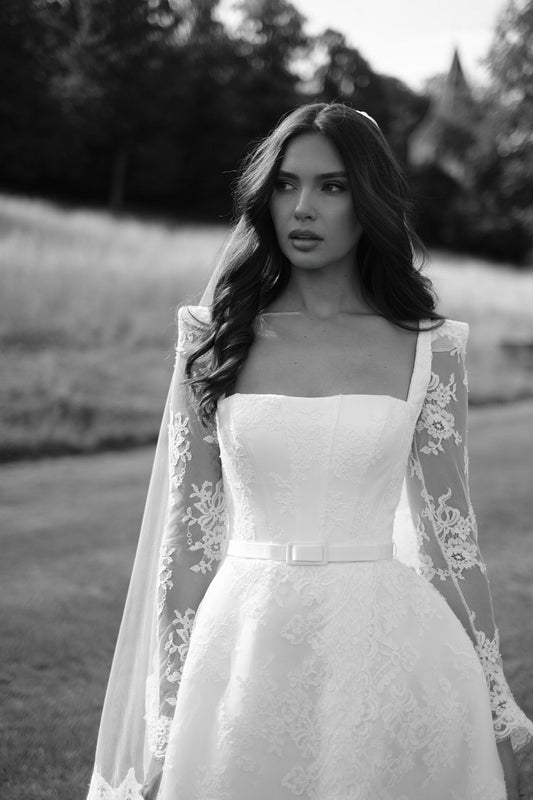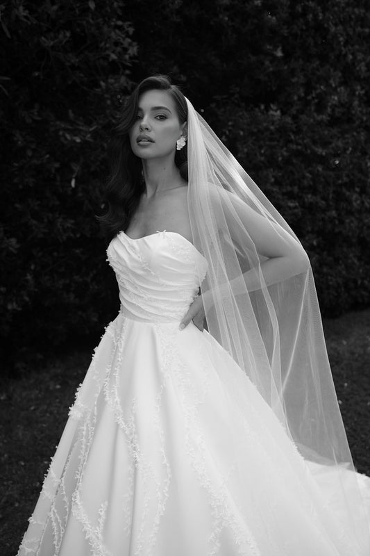 La robe de mariée Catherine est une ode au romantisme et à l’élégance intemporelle. Sa coupe princesse sublime la silhouette avec un volume aérien et majestueux, idéal pour une mariée de conte de fées. Le décolleté cœur apporte douceur et féminité, tandis que le corsage ajusté met en valeur la taille avec grâce. Réalisée dans un tissu lumineux au tombé fluide, cette création se prolonge par une traîne chapelle qui ajoute une touche de noblesse à chaque pas. La robe Catherine incarne la mariée romantique, à la fois délicate, confiante et inoubliable.
