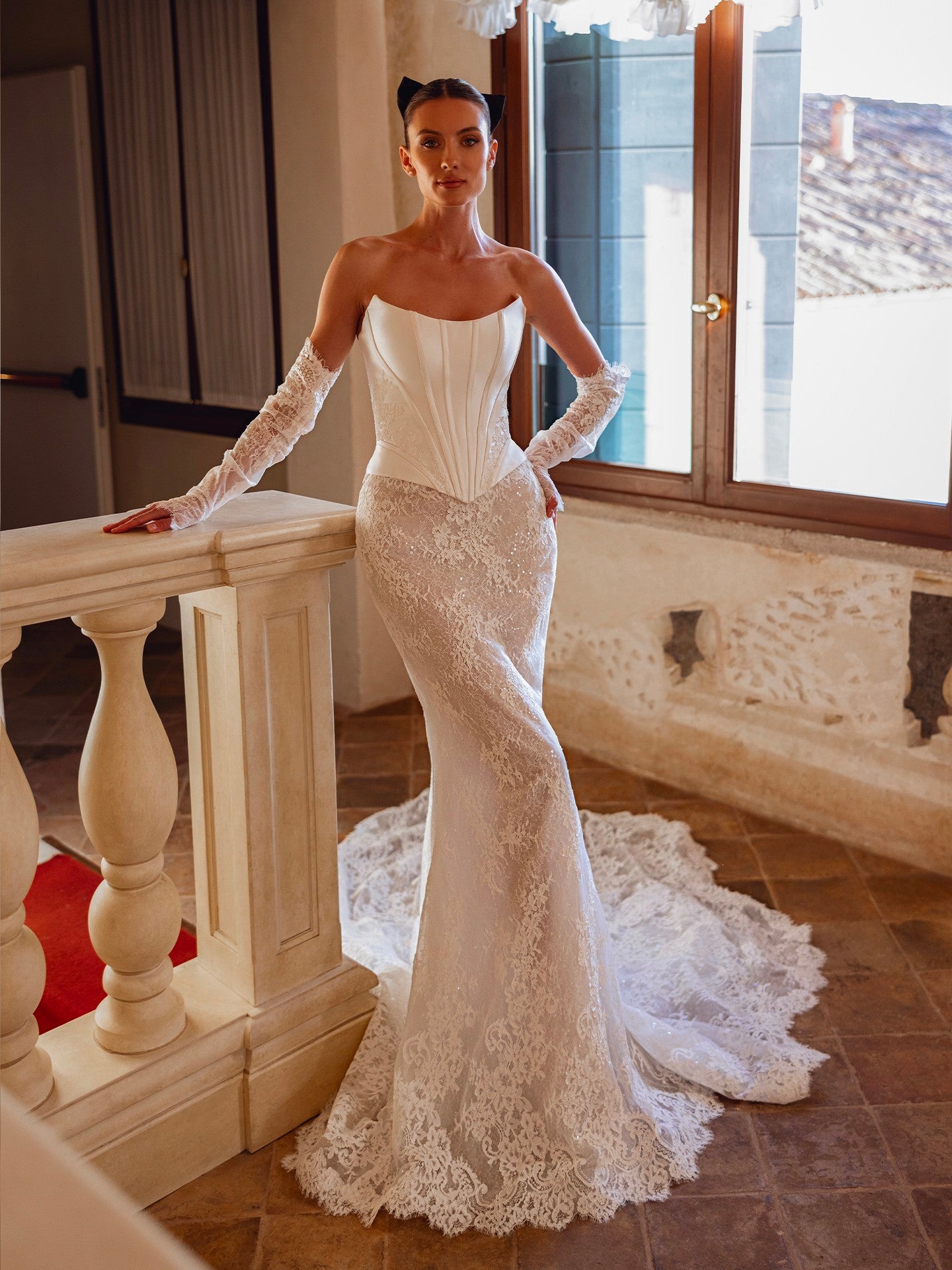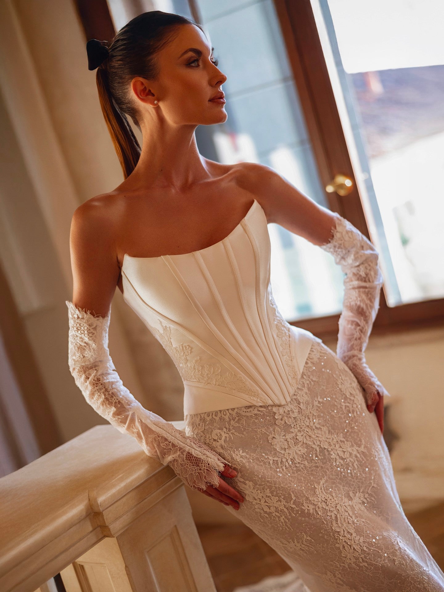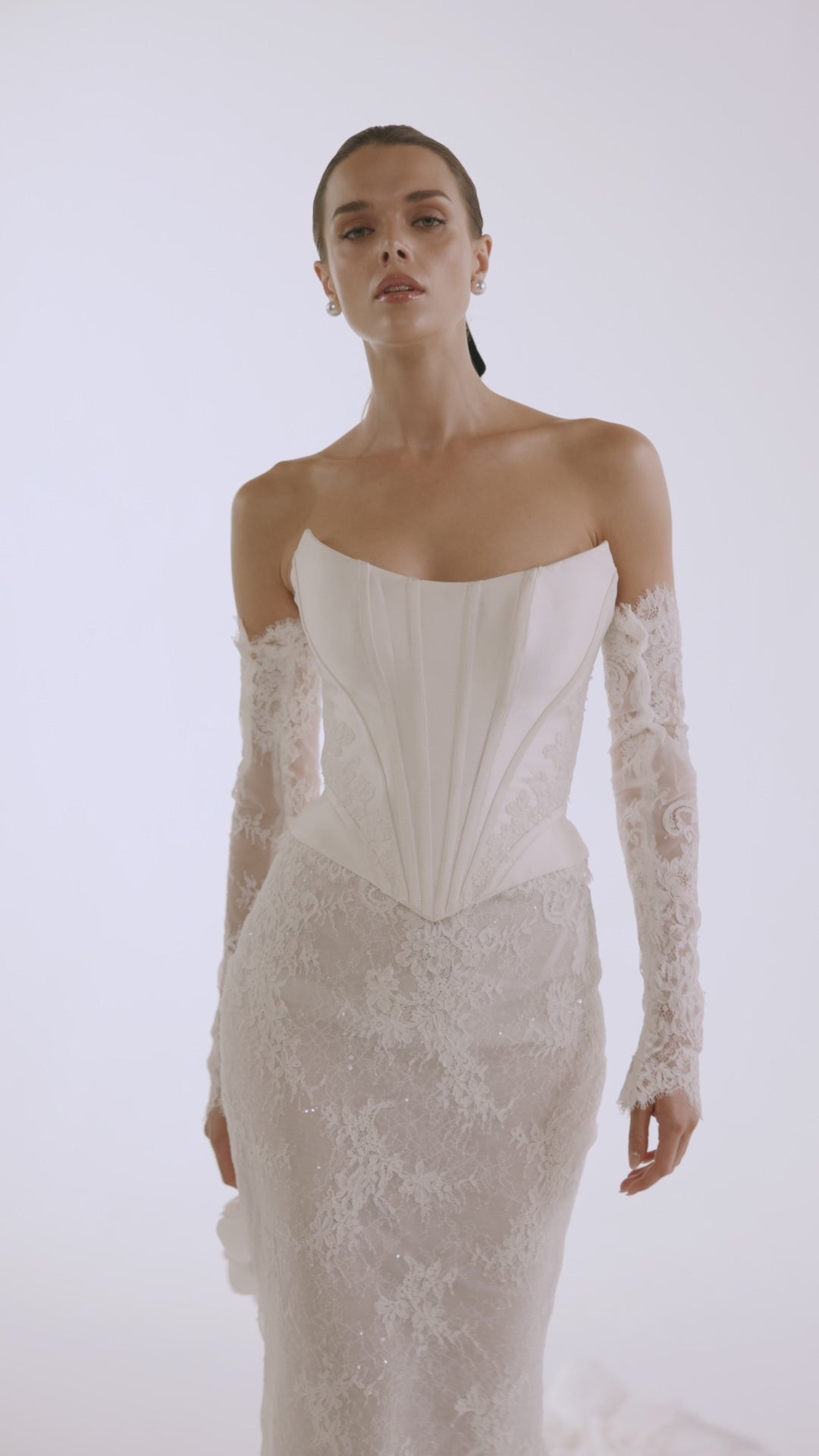 La robe de mariée Killian séduit par son allure sensuelle et résolument moderne. Sa coupe sirène épouse délicatement les courbes avant de s’ouvrir avec grâce sur une traîne fluide. Le décolleté droit met en valeur le port de tête et la structure du buste, tandis que les manches amovibles offrent une double allure : romantique et sophistiquée pour la cérémonie, puis audacieuse et contemporaine pour la soirée. Confectionnée dans un tissu lisse au tombé parfait, la robe Killian incarne la mariée moderne, sûre d’elle, élégante et féminine jusqu’au dernier détail.